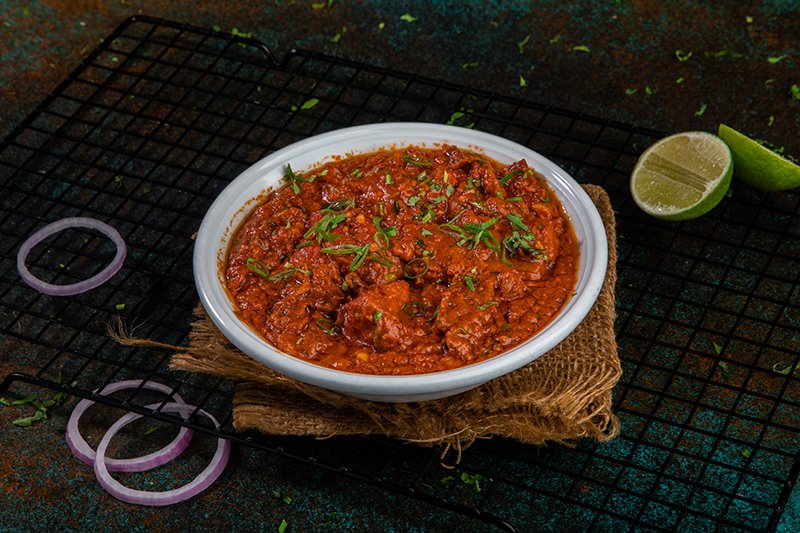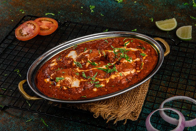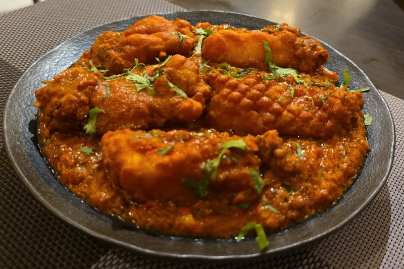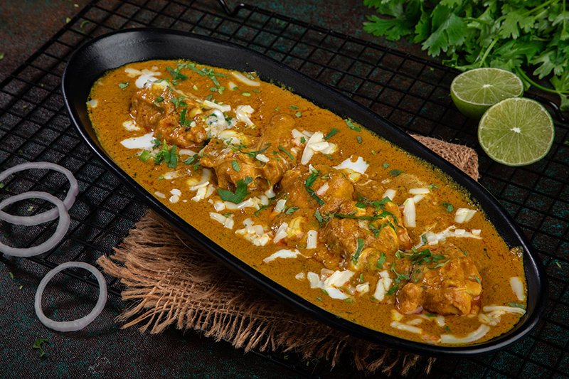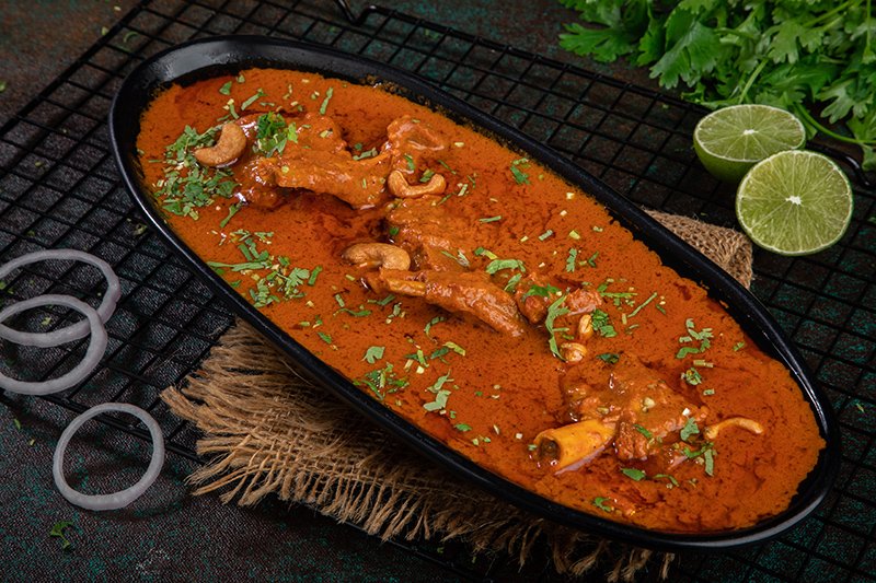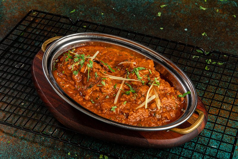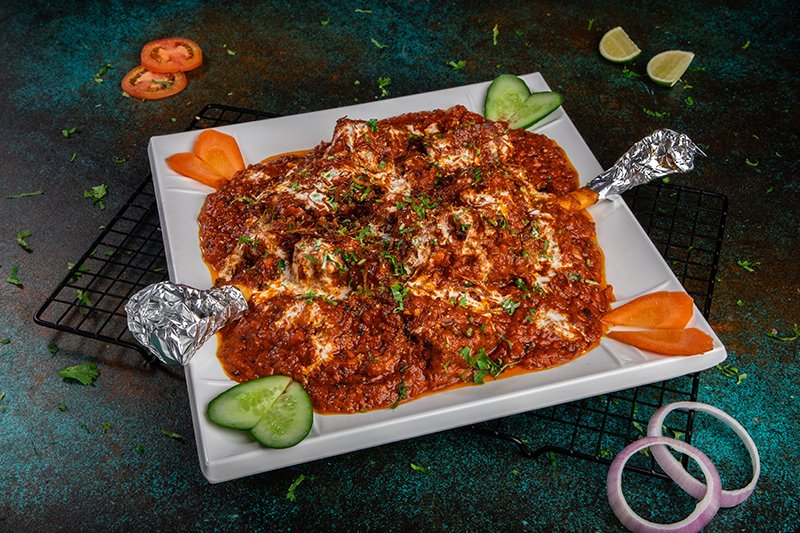 Whole leg of lamb marinated overnight with our Chef Special ingredients cooked in Clay pot oven and finish in tawa with homemade special shahi gravy