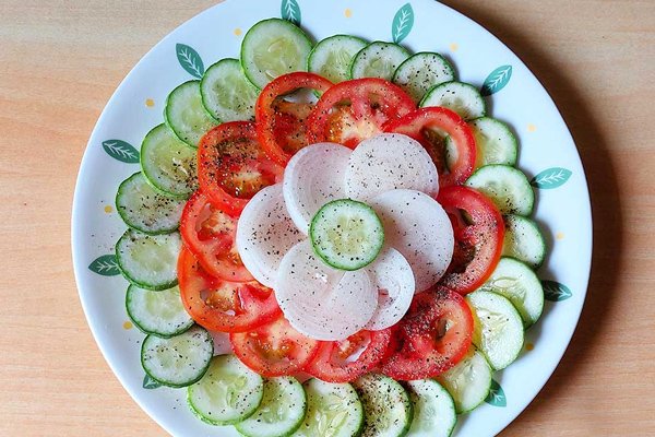 خيار، بصل، طماطم، فجل وجزر