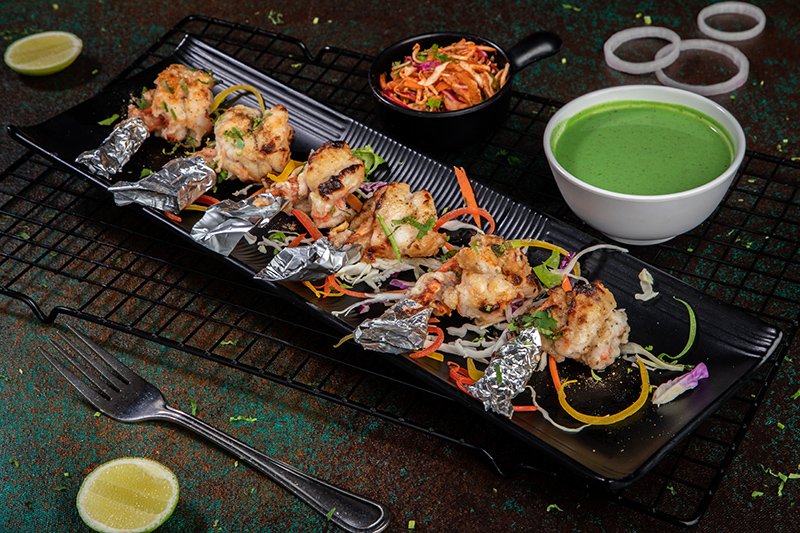 Tandoori Boneless fish cubes cooked in special Sigdi fish masala