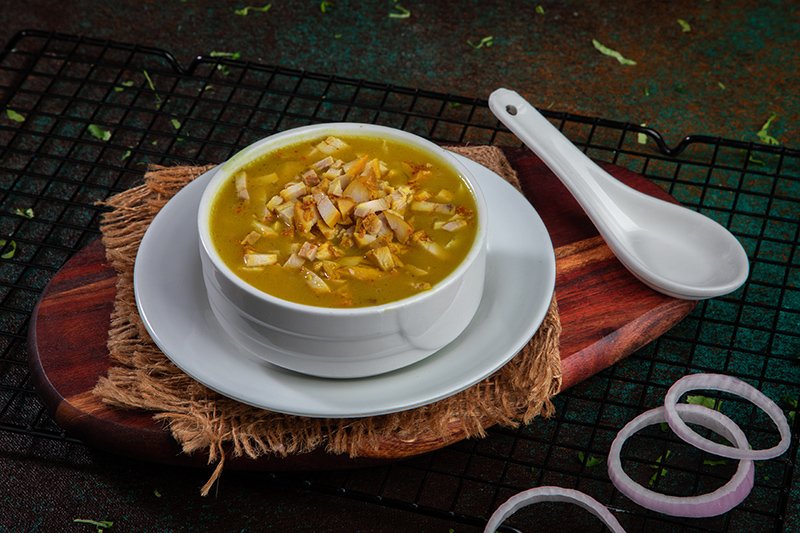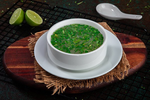 Tangy & clear soup seasoned with freshly chopped coriander