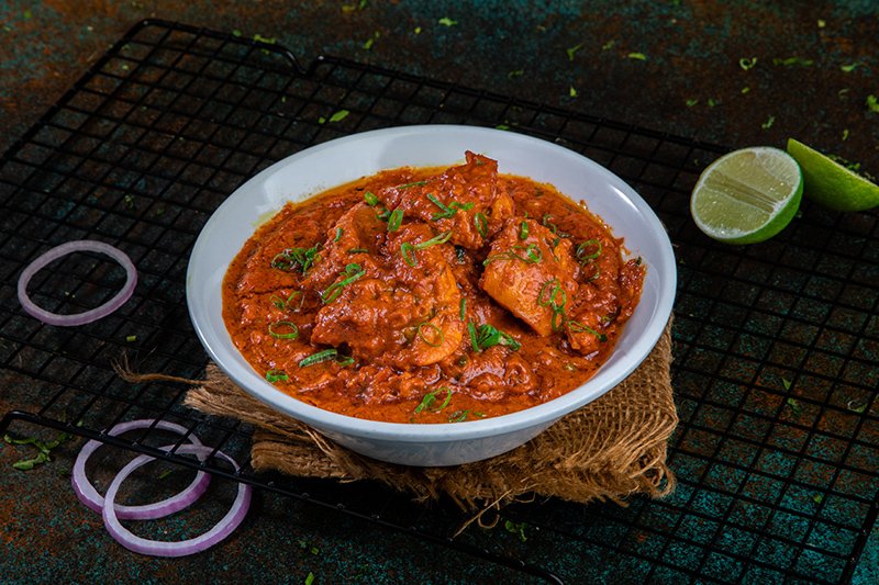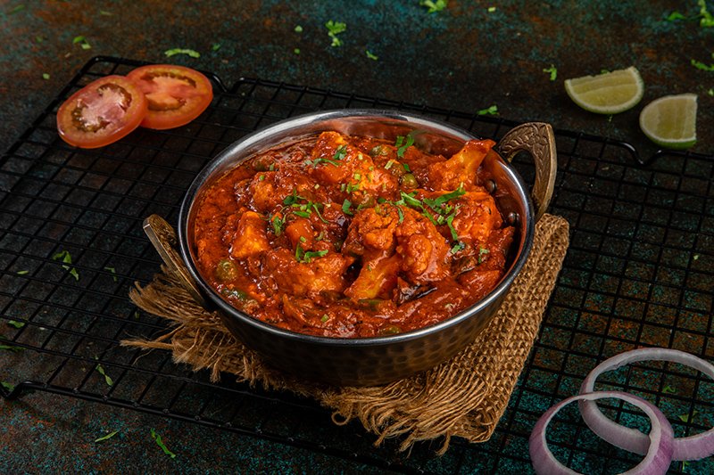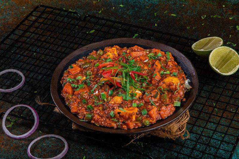 Cooked with green capsicum and onion in red color gravy