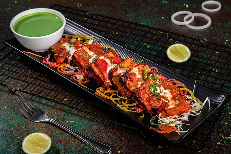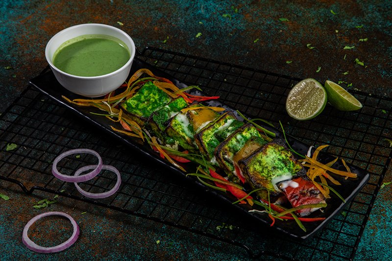 Soft juicy chunks of paneer marinated in masala and grilled to perfection